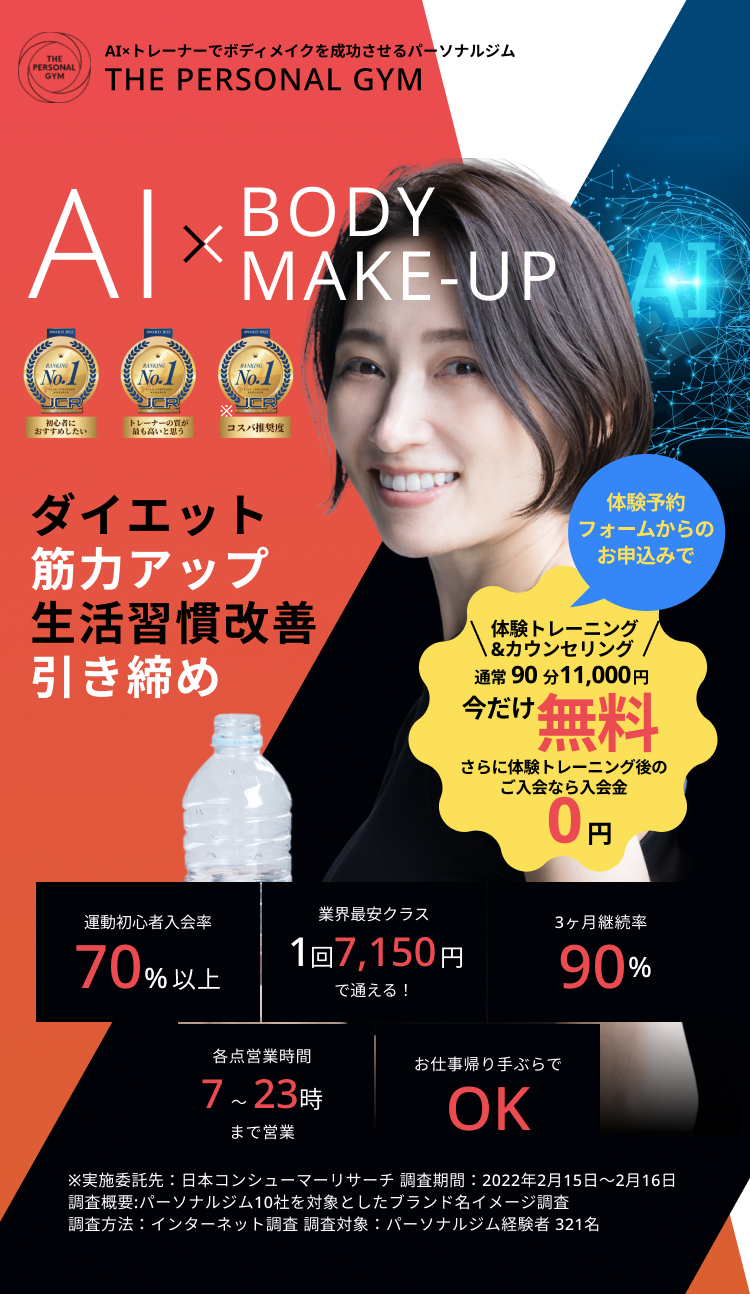 • 特徴: 完全個室のパーソナルトレーニングジムで、長期的に習慣化できるトレーニングを提供しています。ウェアやシューズ、タオルの無料レンタルや、トレーニング後のプロテイン提供もあります。